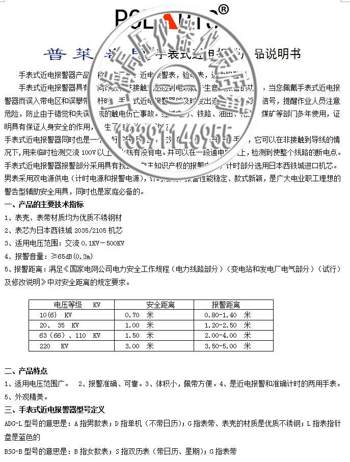 4.本品設(shè)計精巧,美觀實用,既可計時,也可為驗電防護(hù)之用;當(dāng)您戴上此表定讓你更加儒雅,更加安全。